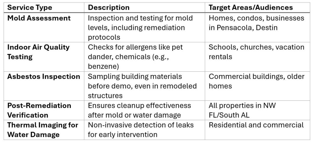 Mike Conroy Consulting offers a wide array of indoor environmental services tailored to the unique needs of coastal communities in Northwest Florida and South Alabama.
